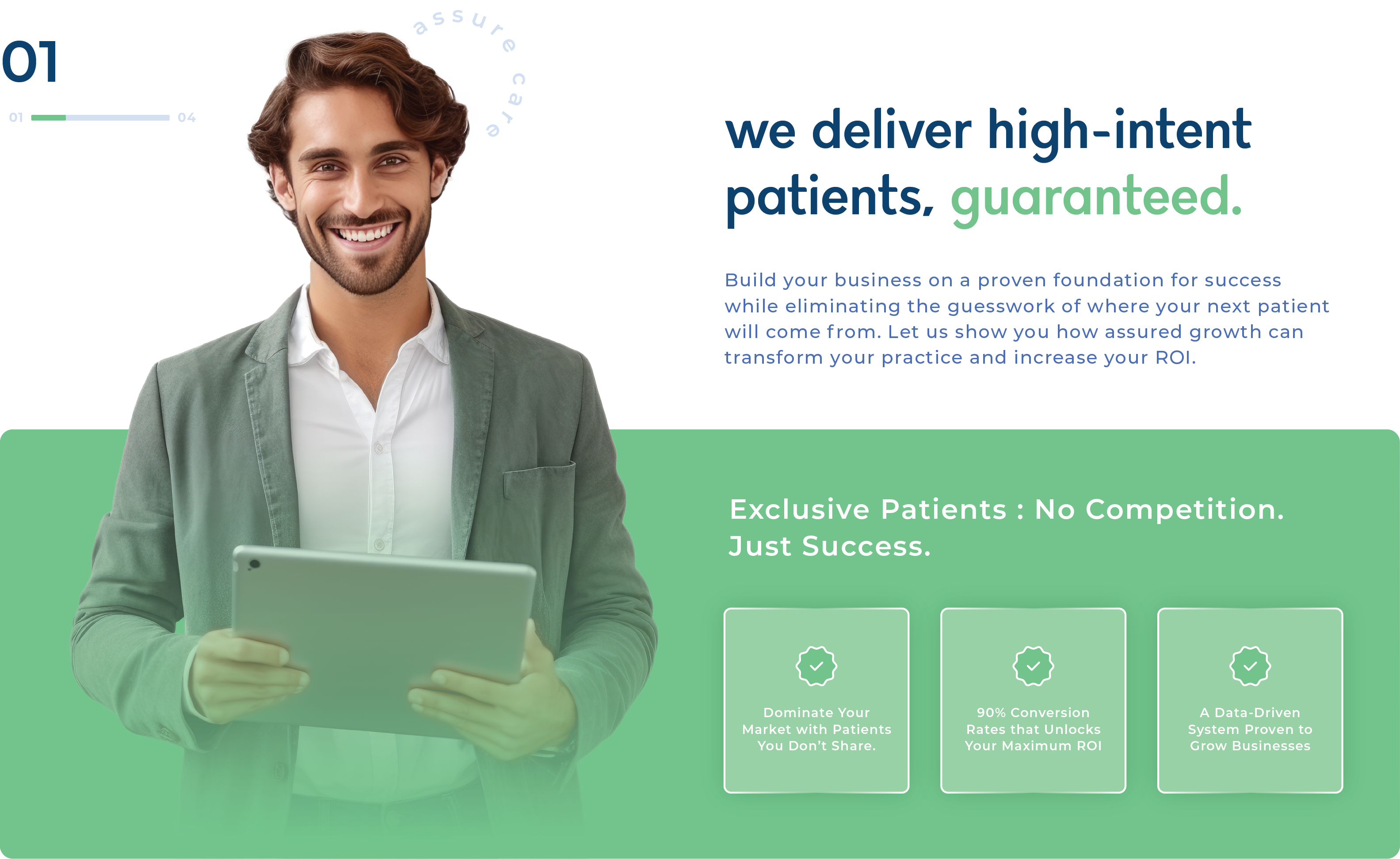 Quit spending time and resources chasing leads—our expert team and AI-powered Salesforce will provide high-intent patients straight to your calendar ready for onboarding.